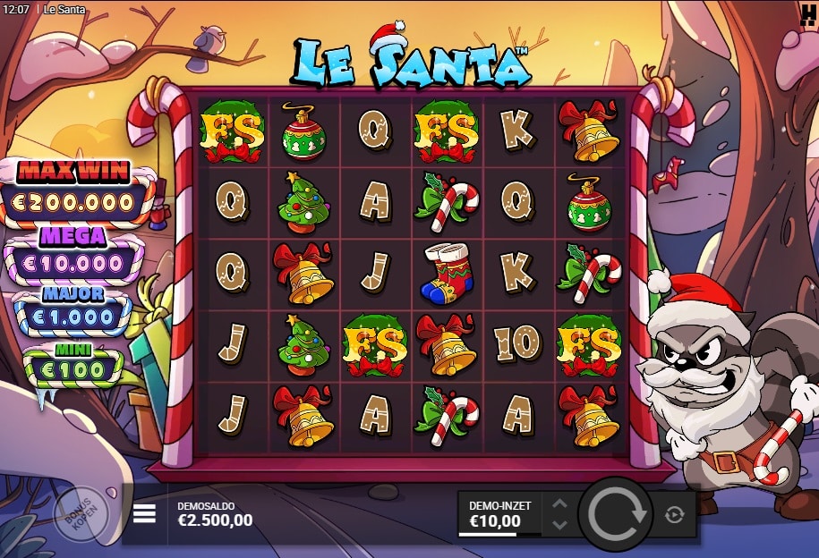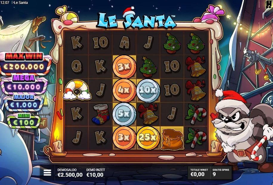Olvida al alegre Papá Noel; este año la Navidad se celebra con Smokey el mapache en Le Santa, una nueva y festiva tragaperras de Hacksaw Gaming. Este juego es un 'reskin' directo del lanzamiento anterior Le King, pero completamente sumergido en una humorística atmósfera navideña. La jugabilidad es la brillante y ya clásica mecánica 'Golden Squares' que conocemos de la serie Le Bandit. Cada clúster ganador deja un rastro de casillas doradas, que se activan con un símbolo de arcoíris para revelar una pantalla llena de premios en efectivo, multiplicadores, recolectores e incluso jackpots fijos. Con una impresionante ganancia máxima de 20.000x la apuesta, este es un regalo de Navidad que no querrás perderte.