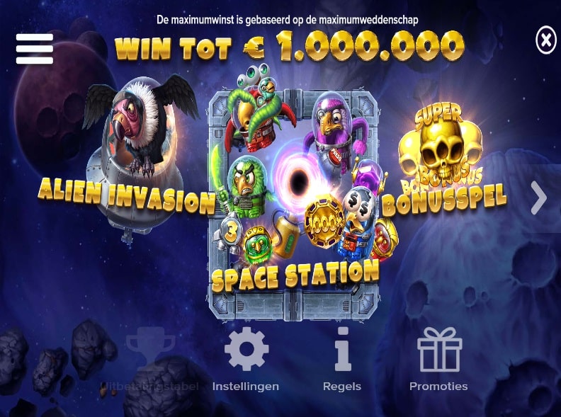 ¿Ganas de aún más acción? Compra acceso directo a funciones a través de X-iter, como Lost in Space (50x apuesta) o Alien Invasion (25x apuesta). Durante Alien Invasion, un bandido espacial se enfrenta a tus pájaros en un duelo columna por columna. ¿Pierdes todos los pájaros? Entonces el bandido se lleva todos los símbolos del campo.